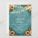 Design élégant en cuir à outils turquoise avec une bordure de tournesol brillante et un centre de défilement en relief, et avec une série de lumières brillantes. Parfait pour les invitations, accessoires et fournitures de fête à thème rustique, occidental ou boho.