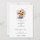 Un pot de fleurs, fait d'écorce d'arbre et rempli d'un bouquet luxuriant de tournesols, de lavande, de blé et d'haleine de bébé, ainsi que d'hydrangées, fait une belle illustration, peinte à la main dans l'aquarelle numérique, qui orne cette élégante invitation de mariage rustique qui comporte également des cordes de lumières. Romantique et charmant, il est un choix agréable pour un mariage de grange, un mariage extérieur, un mariage de jardin ou tout cadre rustique.