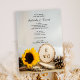 Des invités Invitations à vos noces informelles mais élégantes avec le charmant Rustic Sunflower Natural Woods Faire-part de mariage. Customisez-le avec les noms personnels de la mariée et du marié, les informations spécifiques de cérémonie de mariage et les initiales du couple sur la tranche de bois. Cette coutume décontractée et élégante en plein air de bois ou de forêt inspiro invite à un mariage avec une photo de style nature surannée d'une fleur de soleil jaune, des tranches de bois, un cône de pin et un voile de mariée blanc avec un burlap et un arrière - plan satin blanc.