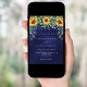Un fond de couleur bleu marine orné de tournesols et de verdure d'eucalyptus. La couleur bleue est inégale. Personnalisez et ajoutez vos noms et les détails de la fête.