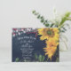 Ce pays rustique Save Our Date mariage faire-part présente deux jolis tournesols jaunes avec baies, lampes à cordes et verdure sur un arrière - plan en ardoise noire. -
