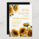 Invitation rustique et élégante à la fête du 80ème anniversaire avec des tournesols jaunes sur un arrière - plan blanc. Contactez-moi pour obtenir de l'aide sur vos personnalisations ou pour demander des produits Zazzle correspondants ou coordonnés supplémentaires pour votre célébration.