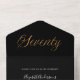 Invitation Tout En Un 70e anniversaire noir script or rsvp