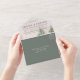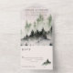Éléments : scène de montagne aquarelle avec des polices serif élégantes et contemporaines. Couleurs : vert, vert chasseur, vert des hautes terres, blanc, brumes blanches, gris, ardoise. Thèmes : moderne, mariage extérieur, montagnes, rustique, boisé, extérieur, forêt, bois, forêt, nature, randonnée, montagnes rocheuses, sierra nevadas, montagnes de crêtes bleues, montagnes de smokey. Collection : À feuillage persistant Mountain Mist Rustic Winter Wedding Collection. Type de produit : Invitation tout-en-un
