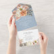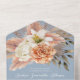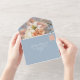 Annoncez votre mariage avec style avec cette élégante invitation tout-en-un qui allie romantique à flancs de pêche aquarellés et feuillage bleu poussiéreux. Comprend la conception de la carte postale et de l'enveloppe RSVP avec monogramme. Personnalisez facilement avec vos détails et ajoutez une photo pour une touche personnelle. Pour obtenir de l'aide, envoyez un courriel à bpkolman@gmail.com. Remarque : Cette invitation tout-en-un nécessite une enveloppe distincte pour l'envoi. Nous vous recommandons de l'apparier avec une enveloppe A9 standard (5,75 po x 8,75 po) pour un meilleur ajustement.