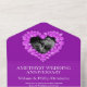 Cette invitation à la fête du 6e anniversaire du mariage a un espace pour la photo de votre couple et un RSVP détachable afin qu'il puisse être scellé, donc aucune enveloppe n'est requise. Belles pierres gemmes améthystes violettes en forme de coeur imprimé graphismes mariages invitations anniversaire, personnalisez avec vos propres détails de fête d'anniversaire mariage, une photo du couple heureux. Faites en sorte qu'il soit facile pour vous et vos invités d'envoyer, car aucune enveloppe n'est nécessaire, il suffit de rédiger à la main sur vos invitations scellées et vos invités peuvent répondre avec le rsvp détachable et apposer un cachet pour répondre rapidement et facilement aux invités. Le sixième anniversaire du mariage est associé à l'améthyste en pierre de taille et le coeur symbolise l'amour. D'autres articles correspondants sont disponibles. Graphiques et design par Sarah Trett pour www.mylittleeden.com et www.mylittleedenweddings.com