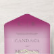 DISPONIBLE AVEC OU SANS CODE QR À ANALYSER. Ce design simple mais élégant a un look moderne, avec deux anneaux de mariage en or entrelacés sur un habillage blanc doux sur un arrière - plan rose fuchsia doux. Les invitations tout-en-un personnalisées sont une combinaison unique d'une invitation personnalisée magnifiquement imprimée et d'une carte postale RSVP perforée facile à déchirer. Et ils sont si faciles à utiliser ! Il suffit de plier, puis de sceller le rabat arrière avec les trois autocollants clairs inclus, et le courrier. Et quand vos invités reçoivent votre invitation personnalisé, ils déchirent la carte RSVP perforée et vous la remettent dans le courrier !