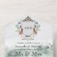 Invitation de mariage avec une crête fantaisiste sur le thème de la forêt, personnalisable avec les initiales du couple.