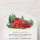 Éblouissez vos invités avec cette élégante invitation de mariage à thème de la ferme avec une belle maison de grange rouge et des arbres verdoyants avec carte postale RSVP détachable. Ajoutez simplement les détails de votre événement sur ce modèle facile à utiliser pour en faire une invitation unique.