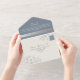 Elégant argent et bleu poussiéreux, faire-part de mariage tout-en-un d'inspiration chinoiserie, fleurie, avec un design botanique délicat et un retour photo. Parfait pour les mariages romantiques avec une touche de charme vintage. Customisez avec vos coordonnées de mariage. Ce design d'invitation est parfait pour les couples à la recherche d'une option d'invitation sophistiquée et facile à envoyer. Remarque : Cette invitation tout-en-un nécessite une enveloppe distincte pour l'envoi. Nous vous recommandons de l'apparier avec une enveloppe A9 standard (5,75 po x 8,75 po) pour un meilleur ajustement.