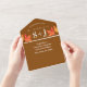 Contemporain, simple, code qr, terre cuite, orange brûlée, automne, moderne, élégant Mariage All in One Invitation. Calligraphie triple, minimum, simple, unique, invitation de mariage moderne. Customisez avec vos détails. Commandez à temps pour éviter une déception.