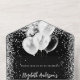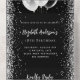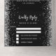 Un arrière - plan noir, des ballons blancs décorés, avec des parties scintillant blanches et faux argentées brillent à l'intérieur. Personnalisez et ajoutez des noms, des détails de parti, la date RSVP, l'adresse et le nom de retour.