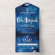 Invitation Tout En Un Bar Mitzvah Blue Galaxy Aquarelle Script d'agate