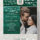 Célébrez avec style ce faire-part de mariage vert émeraude aux tons boho rustiques, avec ses lumières à cordes brillantes, ses floraux bordeaux riches et son agencement photo romantique. L'arrière - plan à grains de bois et l'élégante crête monographique d'inspiration boisée créent un look audacieux et mémorable, parfait pour les mariages de automne, les fêtes de grange ou les événements extérieurs. Cette invitation tout-en-un comprend un code QR RSVP et un panneau d'adresse de retour, alliant charme rustique et confort moderne.