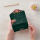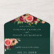 Belles aquarelles bohème arrangements floraux avec plumes, feuillage et fleurs colorées, le tout en un faire-part de mariage de couleur vert émeraude. Modèle offre un espace pour personnaliser chaque invitation avec votre nom et adresse d'invité.