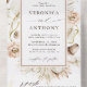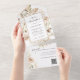 Ce tout en une carte de faire-part de mariage est composé de protéa d'aquarelle peinte, d'orchidées blanches, d'herbe de pampas sèche, d'anthuriums blancs, de fleurs sauvages et de feuilles exotiques avec code RSVP QR. Pour une personnalisation plus avancée de cette conception, cliquez sur le lien "customiser plus loin". Des articles correspondants sont également disponibles.