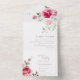 Invitation Tout En Un Boho Rouge Rose Fleurs Mariage d'aquarelle
