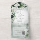 DISPONIBLE AVEC OU SANS OPTIONS DE DÎNER AU LIEU D'UN CODE QR. Ce design présente une belle végétation tropicale luxuriante et des fleurs blanches sur un arrière - plan d'aquarelle vert doux. Parfait pour la destination ou le mariage sur la plage. Créé par Simply Farmhouse Press.