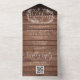 Invitation Tout En Un Bois rustique QR Code Monogramme Floral Mariage
