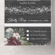 Ces invitations de mariage rustiques en bois tout-en-un qui comprennent les informations de mariage et la carte postale de réponse que vos invités détachent et renvoient. Une combinaison inspirante de roses bordeaux foncé et de fleurs de coton, de confettis argentés brillants, de feuilles de verdure sur le fond en bois. Ce design lumineux sera un succès auprès de tous vos invités ! Modifiez le texte et la couleur de fond en cliquant sur le bouton "personnaliser". Personnalisez les informations en cliquant sur le bouton "détails".