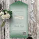 DISPONIBLE AVEC OU SANS CODE QR À ANALYSER. Ce design simple mais élégant a un look moderne, avec deux anneaux de mariage en or entrelacés sur un habillage blanc doux sur un arrière - plan vert émeraude doux. Les invitations tout-en-un personnalisées sont une combinaison unique d'une invitation personnalisée magnifiquement imprimée et d'une carte postale RSVP perforée facile à déchirer. Et ils sont si faciles à utiliser ! Il suffit de plier, puis de sceller le rabat arrière avec les trois autocollants clairs inclus, et le courrier. Et quand vos invités reçoivent votre invitation personnalisé, ils déchirent la carte RSVP perforée et vous la remettent dans le courrier !