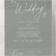 Cet élégant charme RSVP mariage sage foncé tout en une invitation est parfait pour un mariage simple. Le design minimaliste moderne présente une calligraphie intemporelle vert olive foncé et romantique avec un style de conte de fées bohème. Écrivez vos adresses d'invités à l'arrière de l'invitation pliée, ou achetez des autocollants de étiquette de adresse d'invités de coordination (vendus séparément).