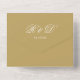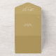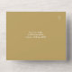 Invitation tout-en-un en or mariage avec typographie élégante et initiales monogrammes. L'invitation comprend un RSVP perforé avec votre code QR du site Web mariage et des détails. Conçu par Thisisnotme©