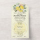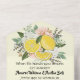 Beau jaune citron tout en une invitation avec citrons et flacon d'ouverture fleuri. A l'intérieur, vous trouverez une version plus légère d'une tranche de citron sur la réponse déchirure. Le texte comprend l'espace pour le nom et l'adresse de l'invité au dos avec un espace pour un timbre. Le texte de déchirure comprend l'adresse de retour des épouses et l'espace pour un timbre comme réponse.