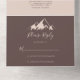 Ce mariage boho de montagne clair, tout en une invitation, est parfait pour un mariage rustique. L'aménagement comprend une montagne beige d'aquarelle idyllique. Enregistrez du papier en incluant plus de détails dans l'invitation plutôt que sur une carte de boîtier séparée.