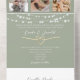 Embarquez pour un voyage d'élégance moderne avec notre faire-part de mariage tout-en-un, avec une palette verte sage sereine qui respire le raffinement. Orné de lumières à cordes délicates et d'un coeur romantique de corde dorée, il capture l'essence de l'amour. Personnalisée avec quatre photos chères du couple, elle témoigne de votre histoire d'amour unique. De plus, avec la commodité de notre site Web mariage inclus et le code QR pour RSVP, chaque détail est chic et pratique sans effort. Joignez-vous à nous pour célébrer l'amour et commencer ce chapitre enchanteur ensemble!