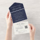 Invitation Tout En Un Code QR élégant Réception de mariage bleu marine