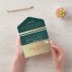 Invitation Tout En Un Code QR Emerald Green et Gold Mariage