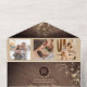 Célébrez votre amour dans l'élégance intemporelle avec notre faire-part de mariage d'inspiration vintage, fabriqué à partir de grange rustique pour une touche de charme champêtre. Décoré de dentelles dorées dorées, il dégage une élégance rustique. Doté d'un code QR pour des RSVP faciles, de cinq photos enchanteresses du couple heureux et d'un lien vers votre site mariage personnalisé, cette invitation combine harmonieusement tradition et commodité moderne. Invitation tes invités à se joindre à toi pour ce voyage inoubliable au début de ton nouveau chapitre.