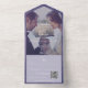 DISPONIBLE AVEC OU SANS CODE QR À ANALYSER DANS LA ZONE RSVP OU AVEC OU SANS OPTIONS DE DÎNER. Cette conception est simple mais élégante, complète avec la dernière initiale du marié ou de la mariée sur le rabat extérieur. La bordure est d'une aquarelle violette et une superposition violette transparente recouvre la photo que vous ajoutez. Ajoutez également un code QR customisé à votre invitation afin que les clients puissent accéder rapidement à votre site Web mariage pour obtenir des détails, des directions, des options de menu, etc., ou ajoutez votre URL Web de registre des cadeaux. Les invitations tout-en-un personnalisées sont une combinaison unique d'une invitation personnalisée magnifiquement imprimée et d'une carte postale RSVP perforée facile à déchirer. Et ils sont si faciles à utiliser ! Il suffit de plier, puis de sceller le rabat arrière avec les trois autocollants clairs inclus, et le courrier. Et quand vos invités reçoivent votre invitation personnalisé, ils déchirent la carte RSVP perforée et vous la remettent dans le courrier !