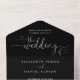Le tout dans un faire-part de mariage noir et blanc avec une typographie de coeurs élégants et des initiales monographiques. L'invitation comprend une carte RSVP perforée avec votre code QR mariage personnalisé. Conçu par Thisisnotme©