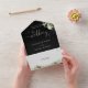 Le tout dans un élégant faire-part de mariage noir et blanc avec des feuilles verdoyants, la typographie chic de coeurs script, et des initiales monogrammes. L'invitation comprend une carte RSVP perforée qui peut être adressée individuellement ou laissée vide pour que vous puissiez écrire à la main les coordonnées de votre invité. Conçu par Thisisnotme©
