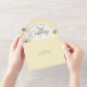 Les marguerites simples du pays dégagent un sentiment de beauté et d'innocence naturelles, symbolisant la pureté et la joie de votre amour. Dans un décor jaune pâle et apaisant, ils créent une scène pittoresque qui saisit l'essence d'un mariage de campagne serein. Les invitations de mariage tout-en-un sont à la fois belles et pratiques en combinant le faire-part de mariage avec une carte postale RSVP perforée facile à enlever. Ils sont aussi rapides et faciles à préparer pour l'envoi. Adressez-vous simplement à l'invitation, pliez le rabat arrière et scellez avec les autocollants clairs inclus. Une fois que vos invités reçoivent l'invitation préadressée, ils arrachent simplement la carte perforée RSVP et la déposez dans le courrier. L'ajout du code QR permet à vos invités d'accéder facilement à votre site mariage pour obtenir des informations, notamment les détails de la réception et les choix de dîner !