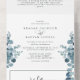 Dusty Blue Eucalyptus Mariage de verdure tout en une invitation. Ce design mariage moderne et personnalisé peut être facilement personnalisé avec vos propres détails de mariage.