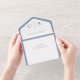 DISPONIBLE AVEC OU SANS CODE QR À ANALYSER DANS LA ZONE RSVP. Ce design sobre et élégant est à l'allure moderne, avec un arrière - plan bleu et blanc poussiéreux à deux tons. Ajoutez un code QR à votre invitation afin que les clients puissent accéder rapidement à votre site Web mariage pour obtenir des détails, des instructions, des options de menu, etc., ou ajoutez votre URL Web de registre des cadeaux. Les invitations tout-en-un personnalisées sont une combinaison unique d'une invitation personnalisée magnifiquement imprimée et d'une carte postale RSVP perforée facile à déchirer. Et ils sont si faciles à utiliser ! Il suffit de plier, puis de sceller le rabat arrière avec les trois autocollants clairs inclus, et le courrier. Et quand vos invités reçoivent votre invitation personnalisé, ils déchirent la carte RSVP perforée et vous la remettent dans le courrier ! Créé par Simply Farmhouse Press.