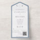 Invitation Tout En Un Dusty Blue & White Monogram Code QR minimal