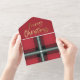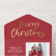 Invitation Tout En Un Ecriture or joyeux noël rouge tartan photo