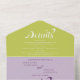 Invitation Tout En Un Écriture vert violet retro boho mariage chic