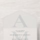 Faire-part de mariage moderne tout-en-un présentant un design initial éditorial raffiné avec une grande lettre de fond et une typographie minimaliste et épurée. Conçu pour les cérémonies civiles, les mariages à l'hôtel de ville et les célébrations juridiques contemporaines, ce faire-part combine les détails de la cérémonie et la réponse en un seul format élégant plié.
