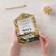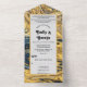 Invitation Tout En Un Élégant Black and Gold Waves Abstrait Art Mariage