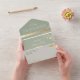 Faites de votre journée spéciale un moment inoubliable avec cette élégante faire-part de mariage tout-en-un vert sauge et or. Doté d'une végétation luxuriante, de délicats motifs floraux d'or et d'un design sophistiqué, ce label écologique et d'invitation est parfait pour l'automne ou toute célébration mariage romantique. Le format tout-en-un comprend l'impression RSVP et l'impression d'adresses de retour, ce qui rend la planification de votre grand jour facile et élégant. Parfait pour les couples qui apprécient la simplicité, l'élégance et la durabilité.