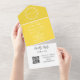 Jaune, minimaliste, chic, élégant, rustique, moderne mariage plié, QR code Mariage tous en une invitation. Triplé, ensemble de budgets. Vous pouvez le personnaliser avec vos propres détails.