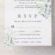 Ce tout en une carte de faire-part de mariage comprend des eucalyptus à l'aquarelle peinte, des feuilles verts, une invitation de mariage avec une carte postale rsvp pour vos invités à couper et renvoyer. Pour une personnalisation plus avancée de cette conception, cliquez sur le lien "customiser plus loin". Des articles correspondants sont également disponibles.