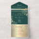 Invitation Tout En Un Élégant Mariage de fleurs vert émeraude