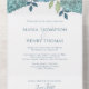 Un texte simple All One faire-part de mariage, sceau triplé et envoyer faire-part de mariage avec texte minimaliste, QR Code et calligraphie avec élégantes fleurs d'aquarelle florale, bleu hydrangea jardin simple, adresse du nom d'invité, scelle faire-part de mariage et envoyer, triple minimaliste ajouter code QR, adresse web rsvp, élégant sceau et envoyer, calligraphie triplé budget ensemble, mariage plié monogrammé moderne, artwork de laura Lacura