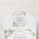 TOUTE EN UNE invitation. En incluant les détails et RSVP sur la faire-part de mariage plutôt que sur une carte séparée, c'est un bon choix. Elégant design de carte avec aquarelle vert et or feuilles, délicat rougeur, fleurs roses, feuilles d'eucalyptus, faux cadre or et éclaboussures, sur un arrière - plan blanc. Utilisez l'outil Personnaliser pour ajouter vos informations. Pour les articles correspondants, s'il vous plaît, visitez ma Collection Florale d'or de verdure.